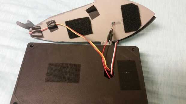 - Aplicar las tiras de velcro adhesivo a la batería, lugar donde permanecerá la batería, parte inferior de la mandíbula inferior, parte superior de la tapa de la caja, parte inferior del servo de boca y la ubicación donde se colocará el servo de la boca. Puedes optar por usar pegamento o algún otro adhesivo. Elegí velcro ya que era más fácil de aplicar, y que podría utilizar algunas de las partes en otros proyectos más adelante.