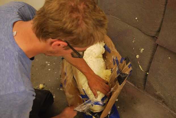 Esta parte es bastante simple. Todo lo que necesita hacer es llenar el molde con la expansión de espuma en aerosol. Recuerde, la expansión de la espuma se expande, por lo que no necesita absolutamente tanto como usted podría pensar.