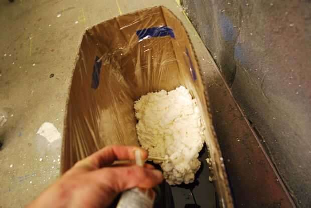 Nota: intenté utilizar espuma de poliestireno la primera versión de este barco, pero el epoxi que utilicé para el fiberglassing derritió todo. Recuerde que para probar sus combinaciones de materiales antes de seguir adelante con una construcción.