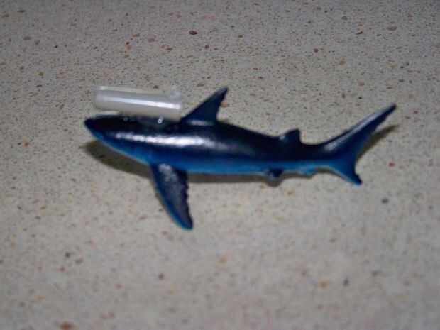 Cosas necesarias:Tiburón de LEGOPuntero láser desde un pen o gato juguete, pequeñoPegamento estupendoPaso 1: instruccionesUn laser de juguete de gato baratoUn tiburón de Lego---Láser de cola a cabeza de tiburónCorte un agujero en la barriga para inse