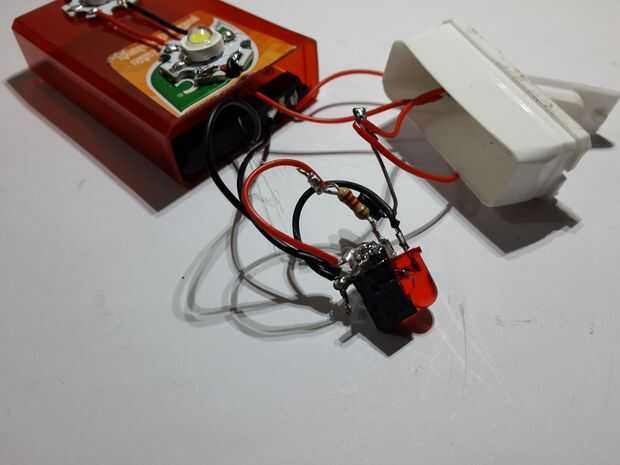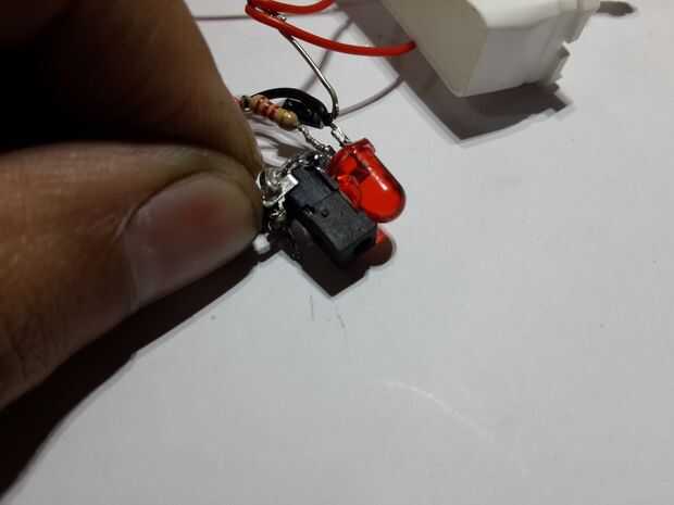 Materiales necesarios:un ledun paquete de bateríasun interruptor deun contenedor de tic tacy algunos cablesPaso 1: cableado. Conecte el positivo de la batería a un interruptor. Luego fije el interruptor para el led. Perfore un agujero en la parte inf