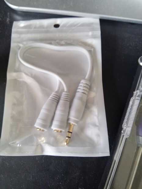 Headphone splitter: Belkin 3.5mm Headphone Splitter Dongle https://www.amazon.co.uk/dp/B006W95DDW/ref=cm_sw_r_awd_uRLWvbTS3HWSW