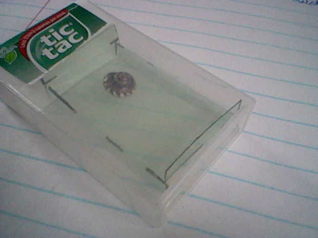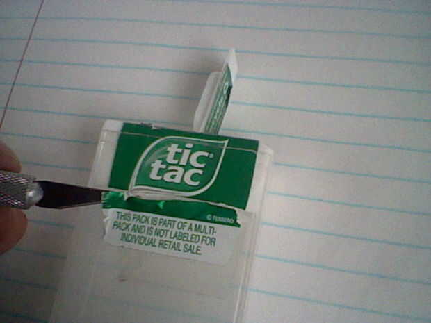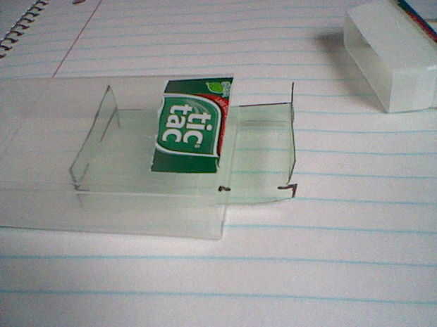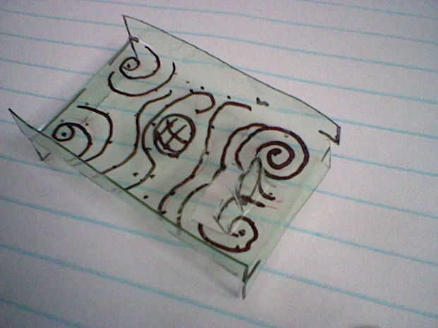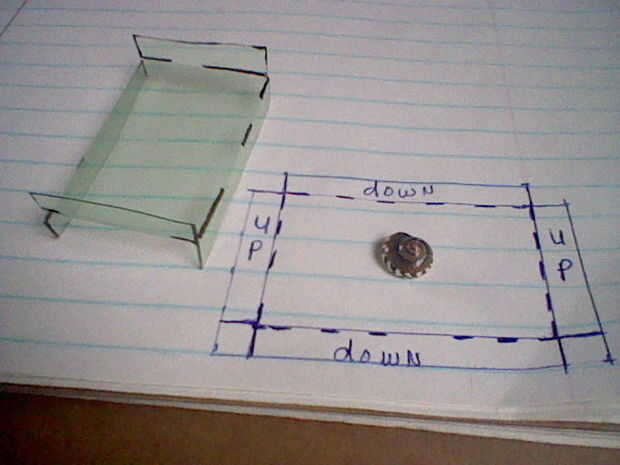 Encontrar una caja vacía. Puntuación y pelar la parte de la etiqueta que cubre la parte clara de la caja. Tire de la tapa. Medida de la caja menos el espesor de la pared. Dibujar un rectángulo 1 3/4 "x 2 1/4". Marque 1/4 línea de los cuatro bordes. Doblar a lo largo de la línea de puntos. Utilizar marcador permanente para hacer zentangle como marcas. Plan de su laberinto de obstáculos. Si utiliza un objeto pequeño como un grano E puede planear un laberinto más elaborado. Cortar una puerta trampa para la concha pasar. Cortar pequeños rectángulos de plástico de 1 1/4" de largo. Plástico de forma de pegamento caliente L según planes de nivel 1 y 2.
