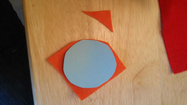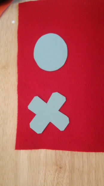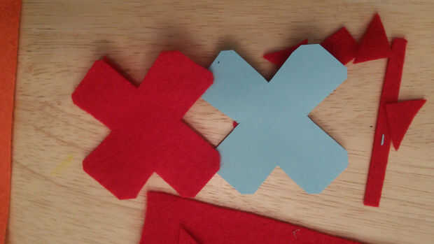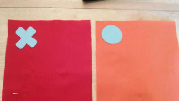 Corte 6 X de la pieza roja de tela y 6 O de la pieza naranja de tela.