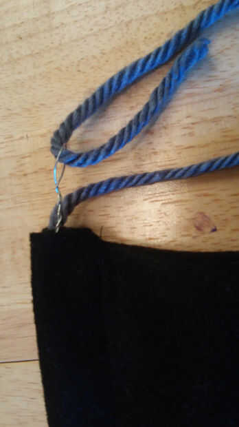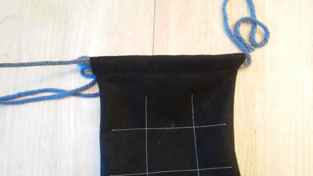 Para agregar la segunda cadena he usado la misma técnica pero empezó en el lado opuesto de la bolsa, así que los extremos del hilo vendría hacia fuera el lado opuesto. Esta técnica crea una gran nueva bolsa con lazo.