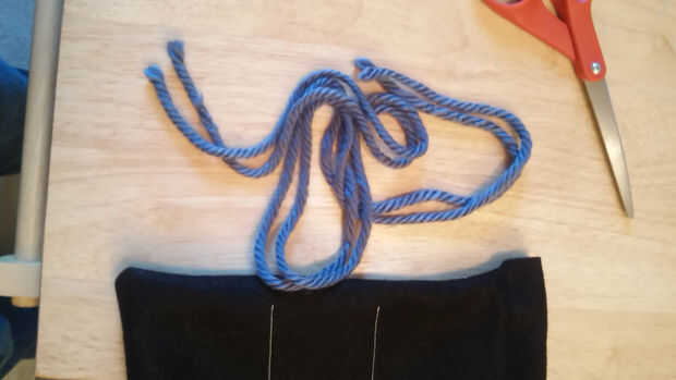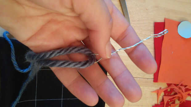 Usé 2 pedazos de hilo de unos 2' de largo. También creé una improvisada aguja de alambre para facilitar el hilo a través del hilo de rosca.