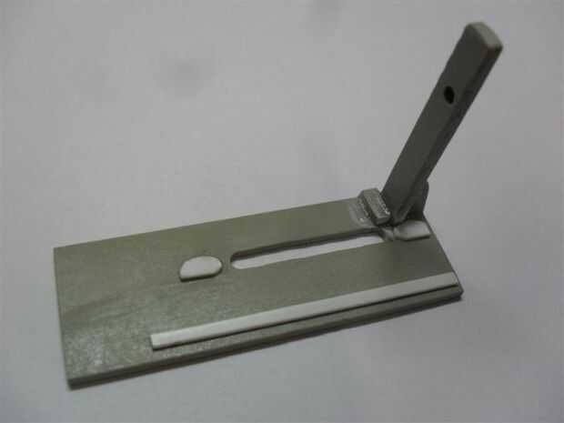 Tiene que ser colocado en el extremo de la base de la impresora a fin de que el botón que empuja caerá la última plaza del tablero.
