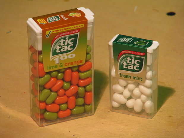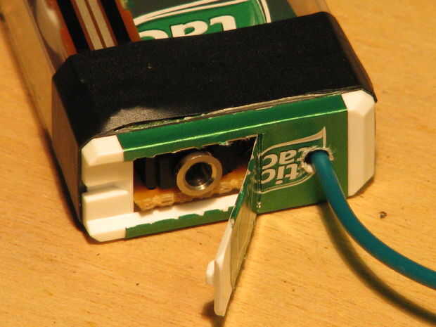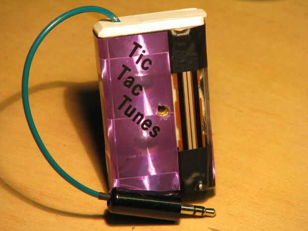 Micro-órgano y batería en una caja de Tic Tac