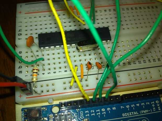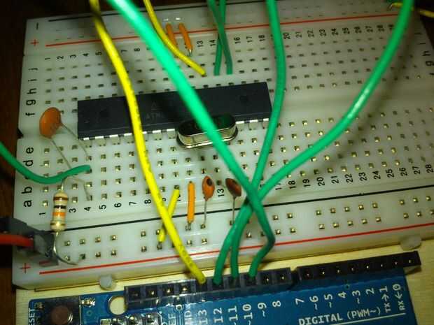 Si no tienes un ATmega328 con Arduino precargado, usted necesitará programar manualmente. Encontré una guía muy útil para bootload ATmega328P-PU (también se puede utilizar el ATmega328-PU, pero es ligeramente más complejo), y he resumido aquí. Asegúrese de comprobar el tutorial original en caso de tener algún problema, si usas el ATmega328-PU o si usted está buscando una guía más detallada.