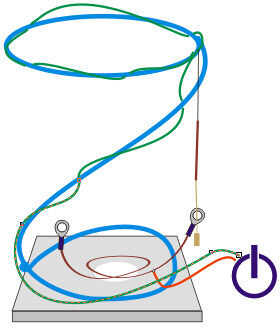Ambos cables de "switch" a uno de los cables de alimentación de la soldadura. El otro cable va a los péndulos.