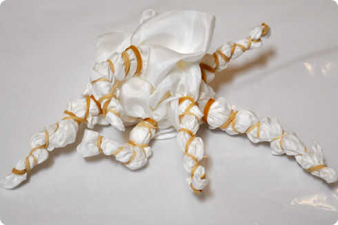 Doblar y atar su magníficamente de seda, seda primer prelava en agua caliente y Synthrapol o Prof. textiles detergente para remover cualquier aceite, suciedad o cualquier cosa que pudiera resistir el tinte.