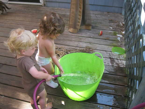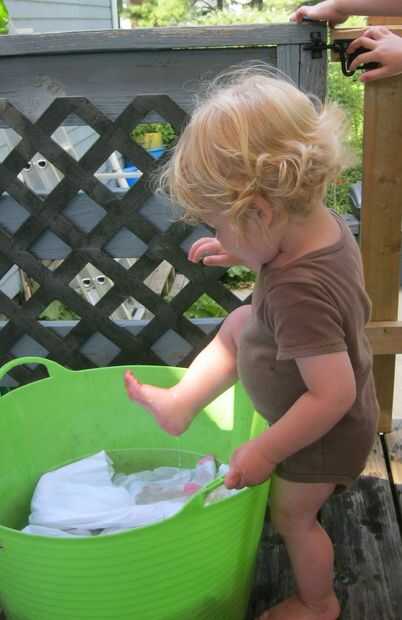 los niños tenían un montón de diversión "lavar" la ropa en la tina. Mi más antiguo fue en y acerca de cómo los peregrinos para lavar la ropa en cubos. También disfrutaron de conseguir muy húmedo.