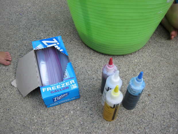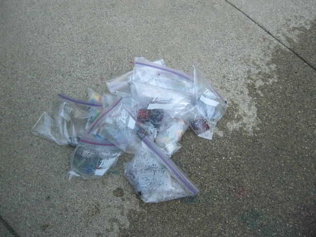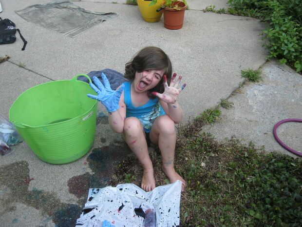 Luego limpiar. Me tiré a las botellas. Se utilizó por casi todo el tinte. (teníamos un montón de izquierda amarillo encima) y luego hosed fuera del área.