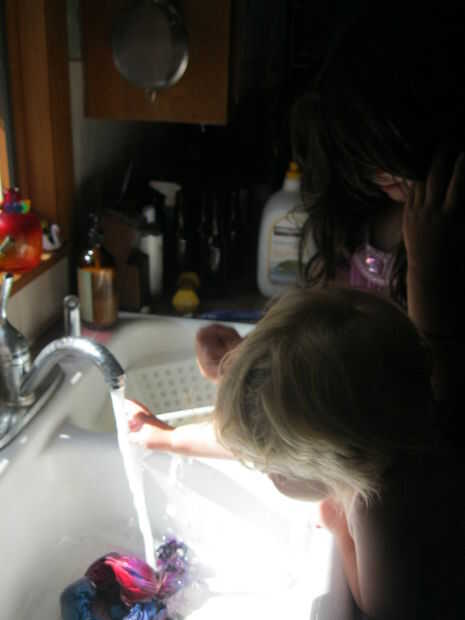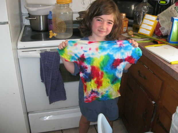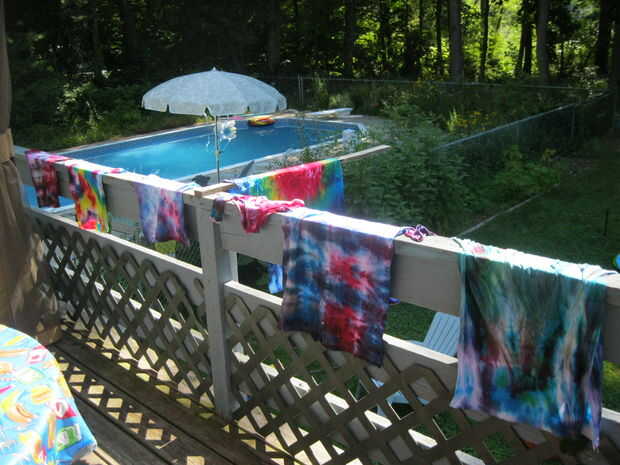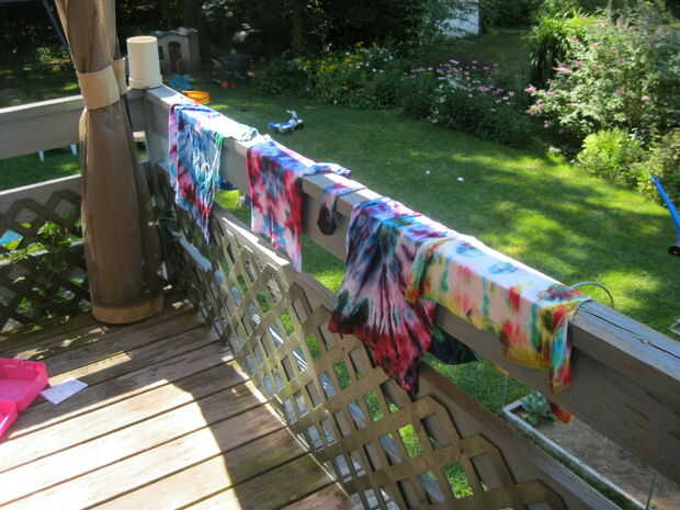 una vez que salga limpia, les tuve llevarlos fuera y colgarlos en el travesaño del pórtico. Probablemente lavaron 2 camisas antes del estaba aburrido. Había aclarado el resto, y trajeron hacia fuera al pórtico uno a la vez. Tenían diversión arreglarlos, escoger favoritos, intentando averiguar cuáles hicieron, etc.. Creo que también fueron a nombrarlos.