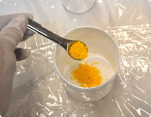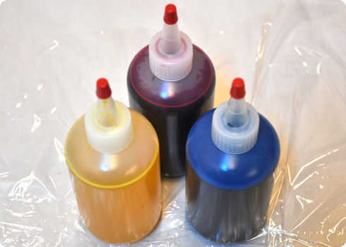 Si usted compró todo por separado en vez de comprar el kit, mida 2 cucharaditas de colorante en polvo (para * colores doble de esta cantidad) para cada color en tazas separadas (para hacer el tinte de 8 onzas). Añadir 1 cucharada de urea a cada taza. Si usa un color con (T) al lado del nombre, opcionalmente agregar 1 cucharada de sal de Glauber. Pegar encima el tinte con agua caliente. Reducir a la mitad todo si haciendo 4 oz tinte. Con el kit, sólo agregue agua tibia a las botellas y agitar bien.