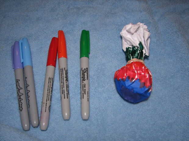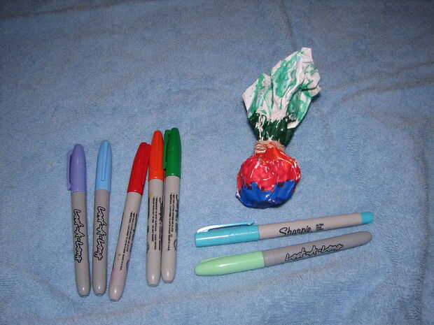 Inicio en la parte inferior de la punta, dibujar una forma en un color (duh). Para las hojas estoy mostrando en el Instructable acababa de usar un patrón de círculo pero se pueden hacer formas (no esperes claridad en producto final pero cambia el patrón final) o usted podría incluso fuera de juego el centro a un lado (se ve cool el final también)