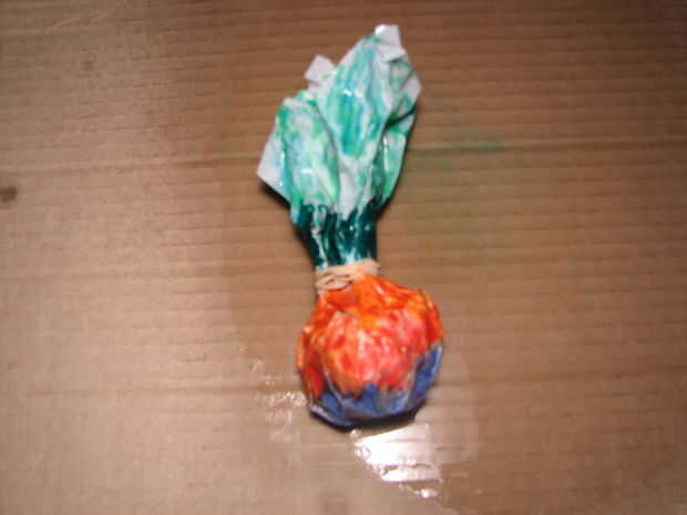 Deje la bola en la cartulina mientras el alcohol se evapora, tomó mina unos 25 minutos para secar a un punto donde estaba un poco húmedo (esto es bueno). Pero era frío y húmedo por lo tuyo debe secar más rápido.