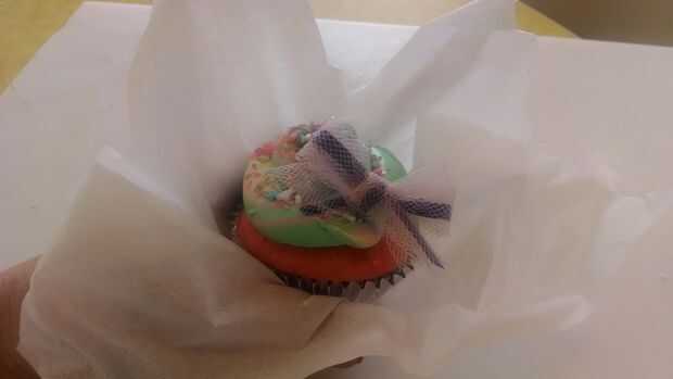 Coloque cada cupcake en 6 "x 6" cuadrados de tejidos en preparación para la colocación en la caja de regalo.
