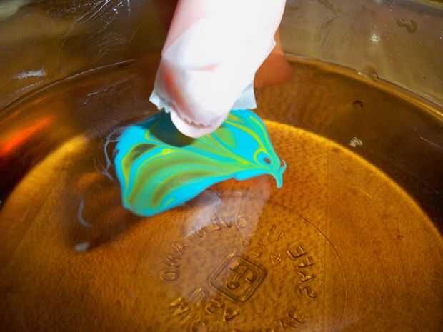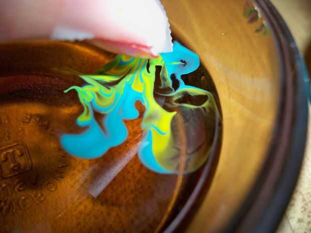 Lentamente Levante el dedo fuera del agua, retire la cinta y admirar su creación.