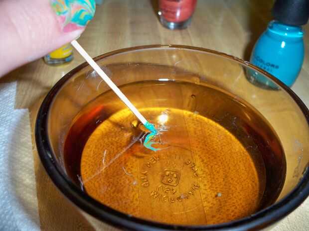 Tuve un momento difícil fotografiar esta parte, como de mis manos están llenas, pero sumerja el palillo de dientes en el agua al lado de la uña y de girar alrededor para recoger el exceso polaco en el agua.