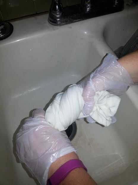 Escurra (mientras que usa guantes) y pasar a preparar la zona para el tinte.