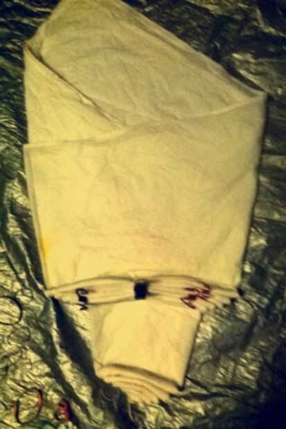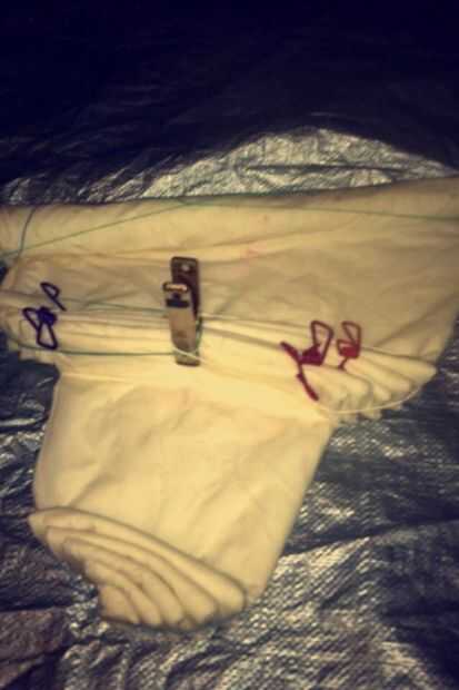 El punto final más o menos puede hacer cualquier cosa. Tomé un palo y lo envolvió hasta que hubo cerca de 5 pulgadas desde el último doblez que hicimos del estilo shibori (o algo). Asegurar esto de todos modos se puede así. La muerte puede comenzar...