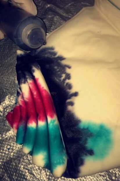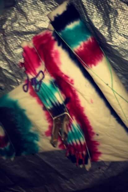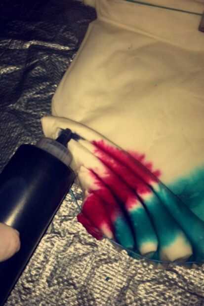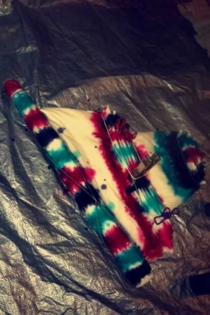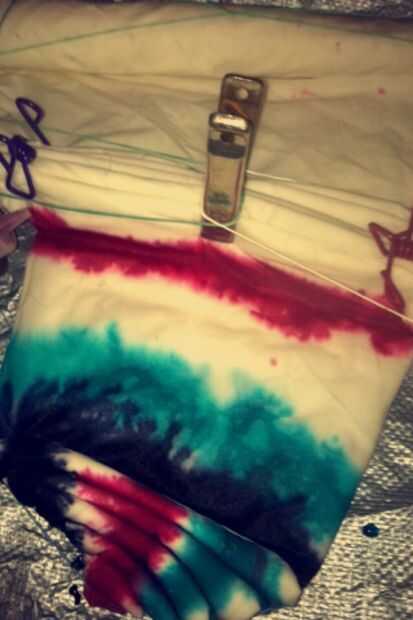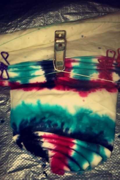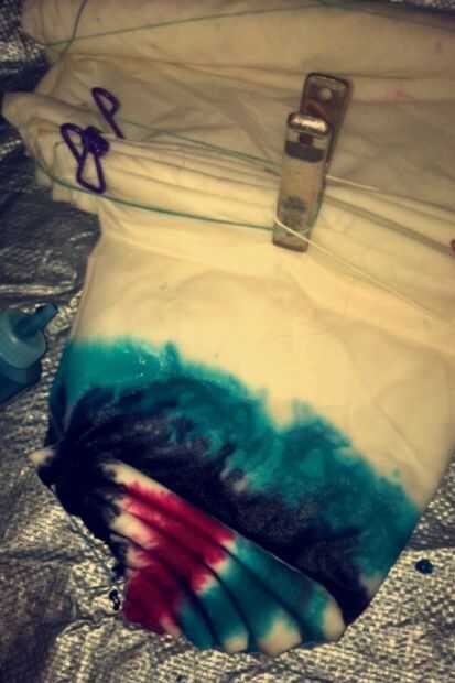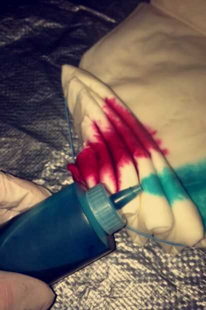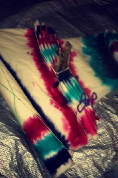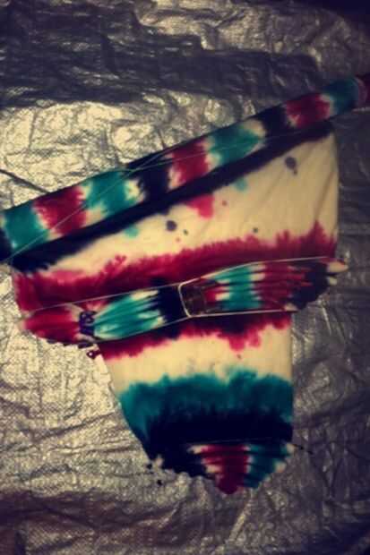 Forma sencilla para teñir la hoja plegada, mantener las líneas. Hacer tres hacia arriba y hacia abajo en la primera parte de acordeón. Tres variaban líneas hacia los lados en el espacio libre entre acordeones. Se vuelven locos y varían los colores y la saturación, el acordeón más grande siguiente. Líneas finas, estrecha en la parte enrollada y entonces cualquier pliegues que no hacer una línea continua a través de ésos. Tenga miedo de poner un montón de tinte en, no sangrar a través a menos que. Usted puede siempre Dale la vuelta check/reforzar la sangría.