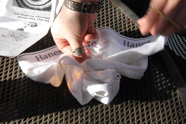 Asegúrese de lavar su ropa interior antes de empezar, como nueva tela comprada puede conseguir rayas al teñido. También, si el tejido es húmedo pero no goteando cuando empiezas, los diseños resultan para verduras.