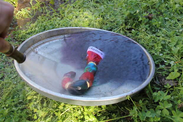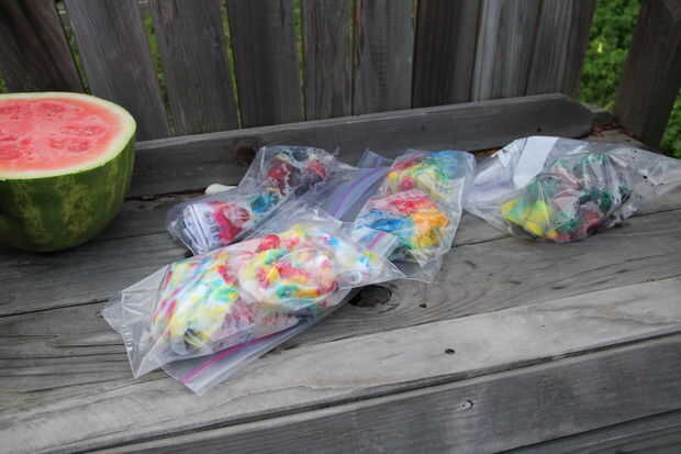 Cuando haya terminado de curar, sacar la ropa interior de las bolsas y aclararlos. Una sorprendente cantidad de tinte va a salir, pero la tela de algodón debería permanecer brillantemente coloreada (la pretina elástico, sin embargo, regresará a blanco). Cuando funcionan claro, la ropa interior está listo para lavarse a máquina en agua caliente. El kit que usa vino con detergente textil profesional, pero no estoy seguro de que es necesario.