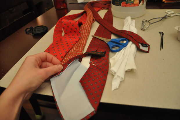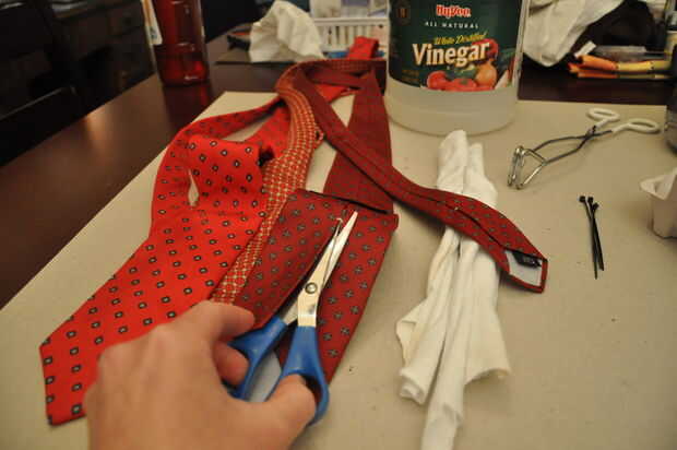 -Corte la puntada grande principal en la parte posterior de la corbata.