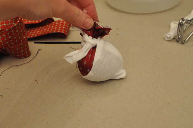 -Tomar una tira de tela blanca y envuélvalo alrededor del huevo y atar. (camisetas viejas, hojas equipadas, medias blancas o calcetines pequeños viejos todos funcionan bien para esto.) Este paso más presiona el lazo sobre el huevo, mejorando la absorción de color.