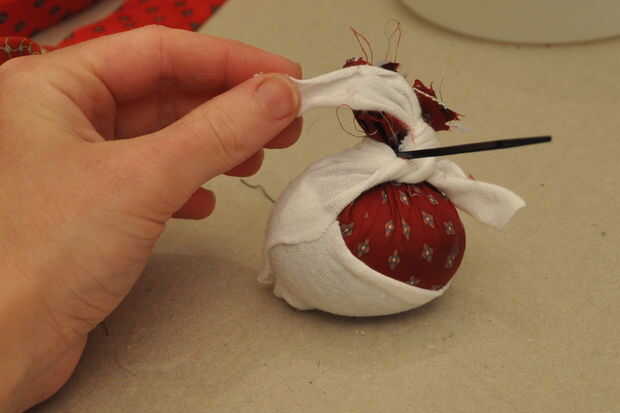 -Un nudo para mantener al tejido apretado en el huevo. Una vez más, ser suave.
