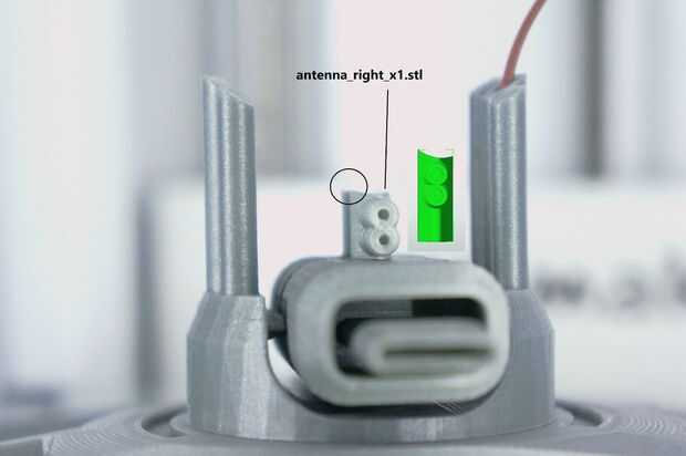 Antes de agregar el ala necesitamos una parte adicional que llamado antena. Está disponible para las alas izquierda y derecha y necesidad de ser verificados antes de adjuntarlos. Puesto que la vaina no está totalmente centrada en lo que respecta a la antena la superficie redondeada de la antena está en un lado entonces ligeramente superior por el otro. Si utilizas la parte de la antena mal entonces no puede Agregar la consola correctamente. Así que por favor verifique esto primero.