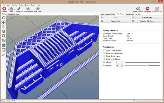 Repetier Host es una gran herramienta para revisar el código G generado antes de la impresión. Capa por capa, puede ver los movimientos de viaje y encontrar problemas antes impresión 3D revelan. Usé esto ya desde mis primeros intentos de varios años y la confianza en sus resultados. Normalmente reviso cualquier código de G antes de la impresión y me ahorró mucho tiempo y dinero ya.