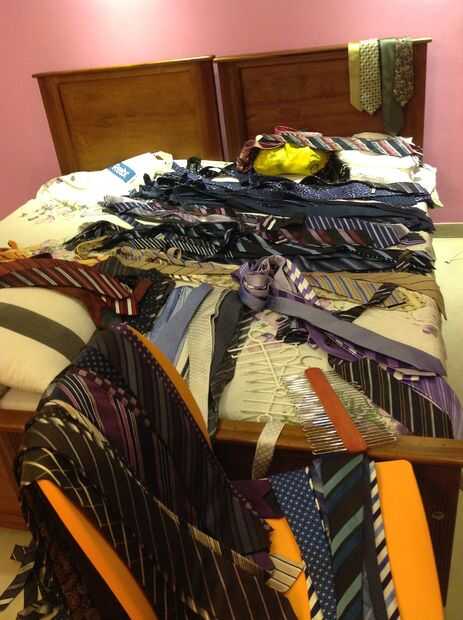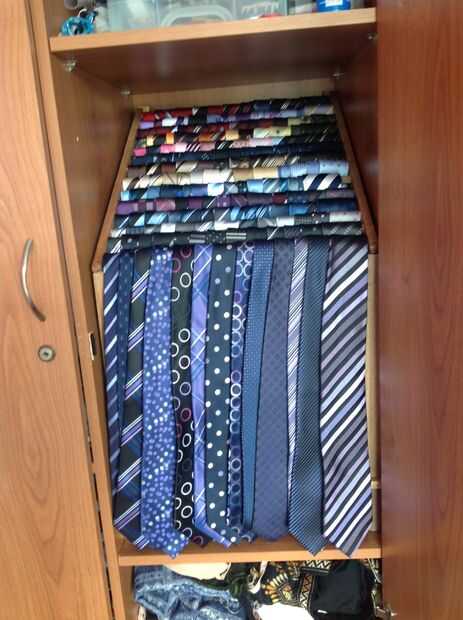 Mi esposo es muy aficionado de los lazos... :)! Es decir, cuando va de compras acaba comprando lazos. No ven el resultado, incluso después de descartar viejos lazos... números por debajo de 100!! Es una gran molestia en las mañanas buscando un empate del gran lote especialmente cuando tiene un lazo especial en su mente! Necesitaba organizar los vínculos de una manera fácil de acceder y elegir.