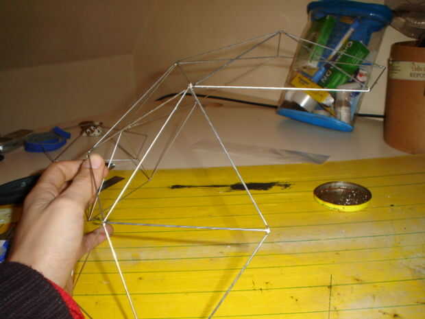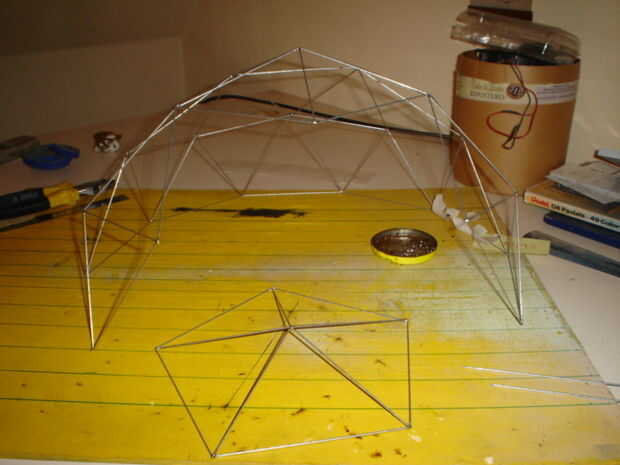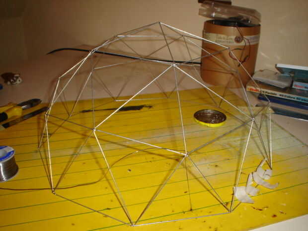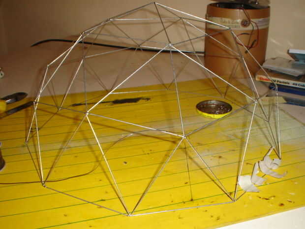 esta un modelo de cúpula geodésica que hice al ver este video http://www.youtube.com/watch?v=vv01yWHo_1otambién puede encontrar una versión de texto en http://www.Hilaroad.com , que es, pero uno de los muchos proyectos de gran ciencia en el sitio.la