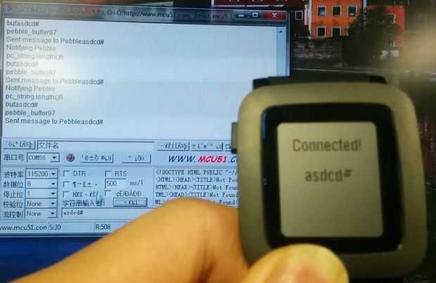 - Enviar que una cadena termina con '#' (por ejemplo "123abc #") al puerto serial de tu Arduino y ver que se muestra en el reloj pebble.