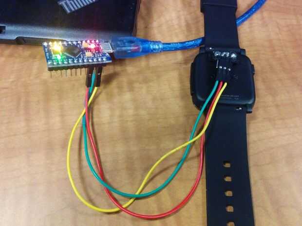 - Conecte el cable de carga hackeado al reloj del guijarro