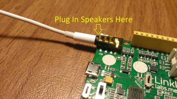A continuación, tendremos que conectar unos altavoces. Esto nos permitirá tener LinkIT uno juega una alarma.