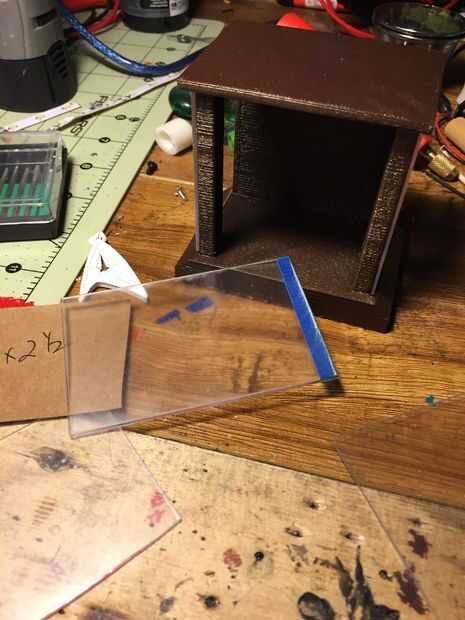 Yo recorte varios lados de plexiglás delgado para abarcar el caso. Luego usé una película espejo para colocar en la parte posterior para dar una imagen reflexiva.