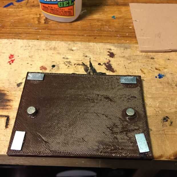 Podría haber usado mini ganchos, pero decidió ser un poco más difícil (pero más frescas) mediante el uso de imanes colocar turner tiempo y cerrar la tapa. Así que pegué imanes de neodimio pequeños al centro de la tapa para sostener la cadena. Esto me permitió poner el turner de tiempo en el lugar adecuado en el caso. Luego pensar que era una buena idea, utiliza imanes para fijar la tapa a la caja. En retrospectiva debo haber empotrado los imanes que es preciso rehacer el caso en la computadora y el diseño de una hendidura en los postes. Ya que yo no hice eso, los imanes pueden verse si vieron desde el ángulo derecho. Sin embargo, el ángulo es que no se puede ver desde la plataforma que estoy poniendo esto, así que no te preocupes acerca de.