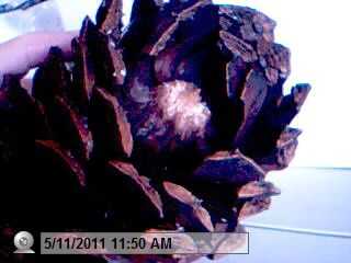 Este cono proviene de un pino muy alto y el rizo de escalas cuando se seca. empapar el cono una hora más o menos se cerrarán para arriba y pueden facilitar la eliminación de escamas. La parte superior de este cono fue eliminar, ahora las escalas pueden ser quitado a la vez. Trate de no romper la báscula y dejar el trozo en la base intacta, hace una espiga y es ideal para el montaje.