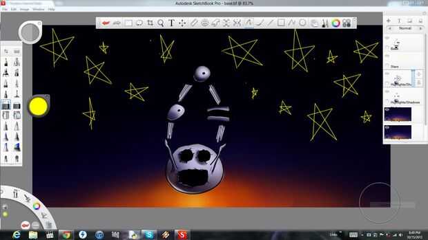 En cualquier caso, decidí volver a la herramienta de bolígrafo con el color amarillo y empezamos a hacer clic como locos por todas partes, ajuste el tamaño de mi cepillo cuando fui a lo largo. La idea es hacer que se vea como las estrellas por lo que puntos en el cielo. Estas estrellas fueron creadas también en una capa independiente, pero podrían haber sido en la misma capa en este caso.