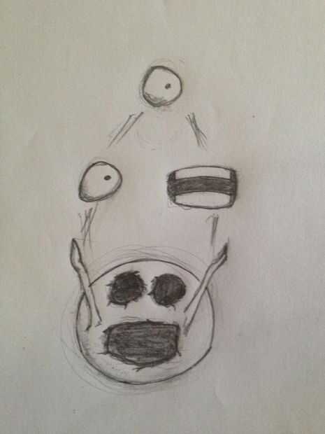 Aquí es la idea que se me ocurrió: un compañero pequeño malabarismo de alguna manera a los ojos y la boca que de alguna manera ha sido eliminado y no tiene manera de poner ellos en el momento. Ah, por cierto, para este cuadro, realmente hay una razón por qué tengo esta ocurriendo al personaje, como pensé que sería divertido.