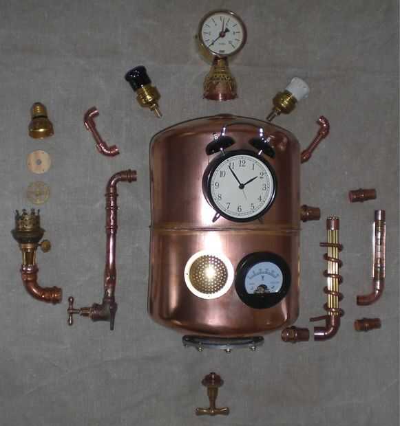 Así que me fui por las escaleras a mi labaoartory de steampunk (en alemán: Dampfkraftlabor) y desarrollaron un primer borrador de que manera esta máquina del tiempo funky fantasy podría podría construirse.