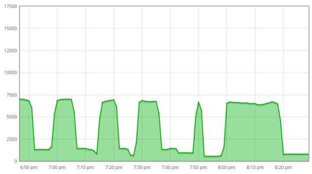 Aquí os muestro un gráfico Wattvision de mi uso de energía alterna durante este pasado fin de semana tiempo parcial pico, entonces transición a las a 20:00. Si desea ver gráficos como este usted la compañía de electricidad puede apoyar leyendo su medidor directamente, como la integración de medidores inteligentes de PG & E con el Águila de la selva.