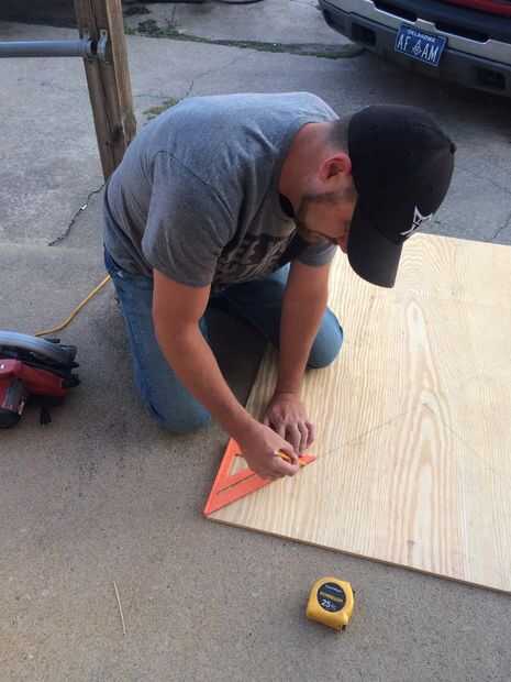 Es construir un cuadro de 34 "x 34" cuadrado. Ángulo interiores tableros se colocan exactamente del centro hacia fuera en el punto 17 "x 17"