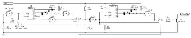 Para los aventureros por ahí he añadido un esquema que agrega otro 2024 para dividir la señal de minutos por 60 para extender su tiempo de 1-60 horas. Usted necesitará por lo menos un interruptor DP3T, probablemente más fácil de encontrar en forma rotativa. Este circuito está sin edificar y no comprobado. Puede que necesite ajustar C3 para conseguir que el fuego correctamente. Corriente de corriente alterna se recomienda definitivamente aquí. Me dejan saber como funciona esto si decides construirlo.