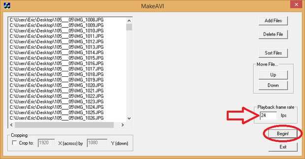 8. Su cámara ya debe número chasis secuencialmente y así MakeAVI se ordena, pero se recomienda que Compruebe la orden que MakeAVI sus archivos de imagen.
