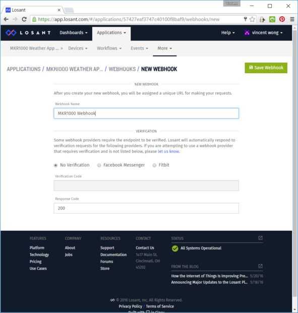 Ahora crear el webhook de MKR1000. Tome nota de la URL de punto final. Esto se utilizará en los códigos para enviar datos a la webhook. Consulte los códigos de Arduino para más detalles.